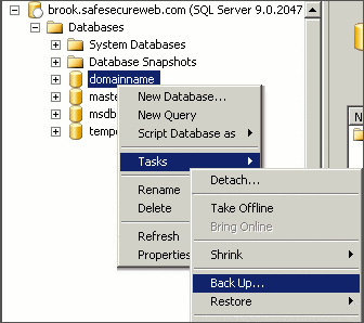 - Right-click your database, expand All Tasks and select Back Up.