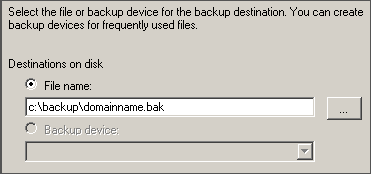 - Enter the path and file name for the backup file.